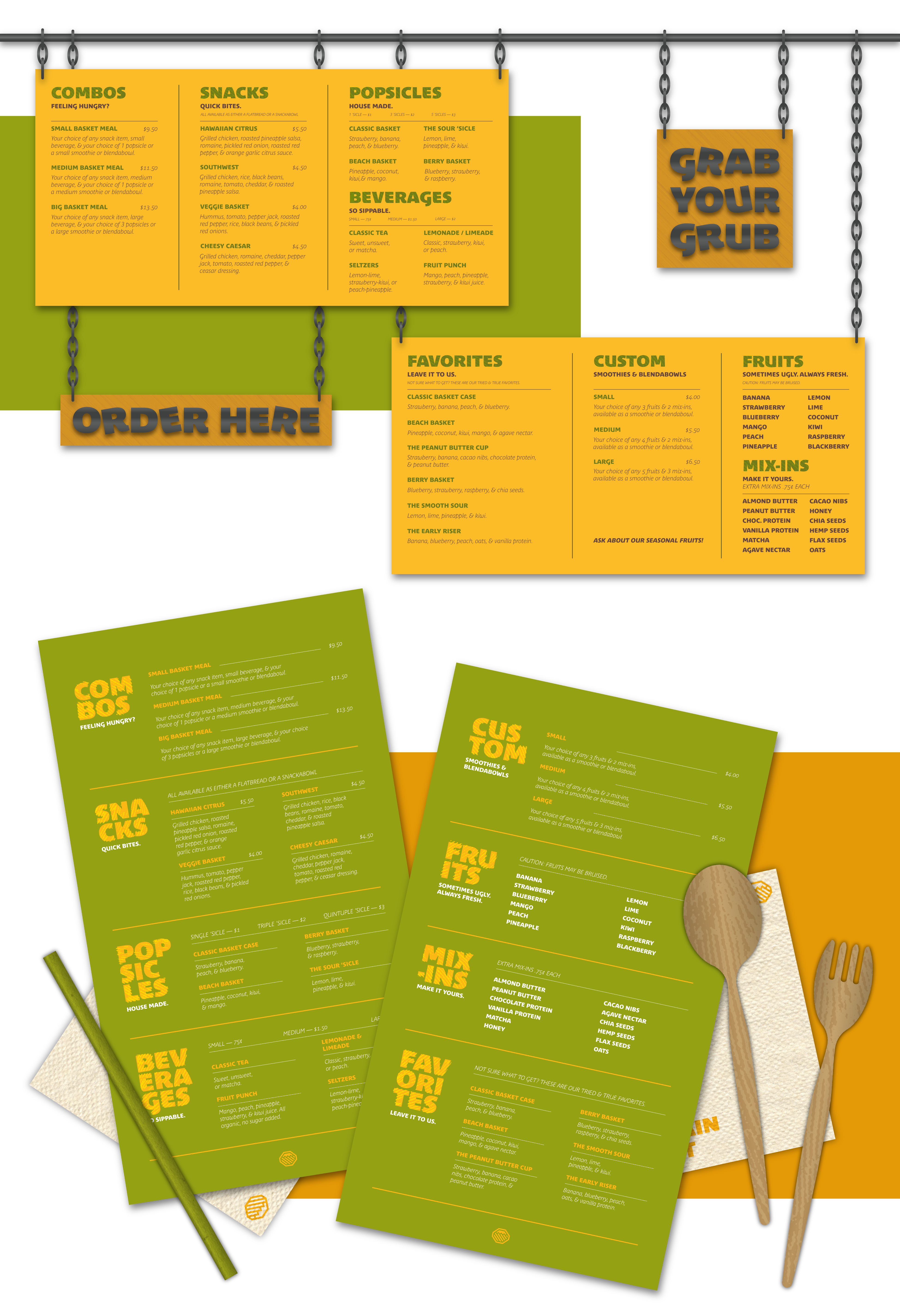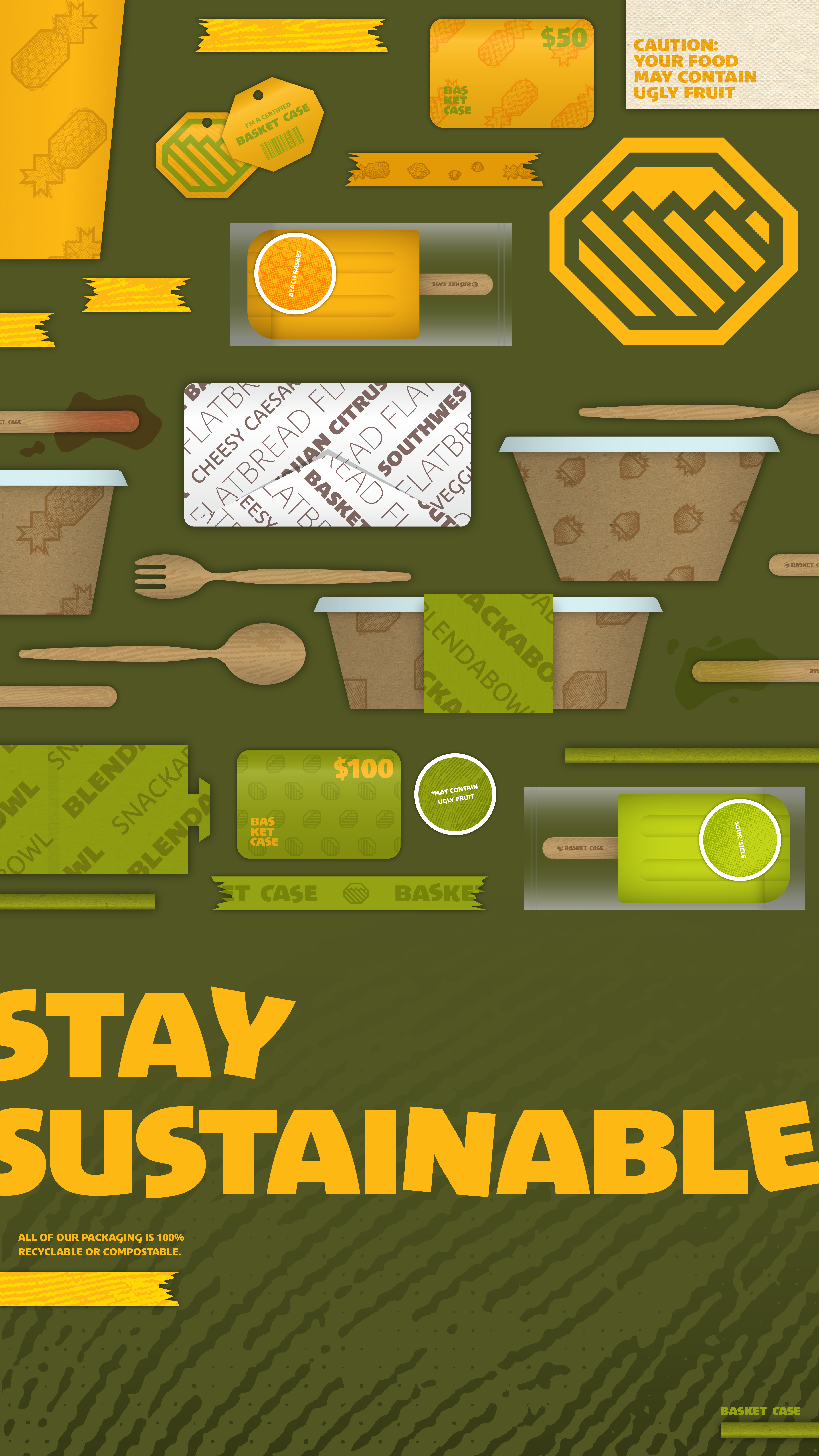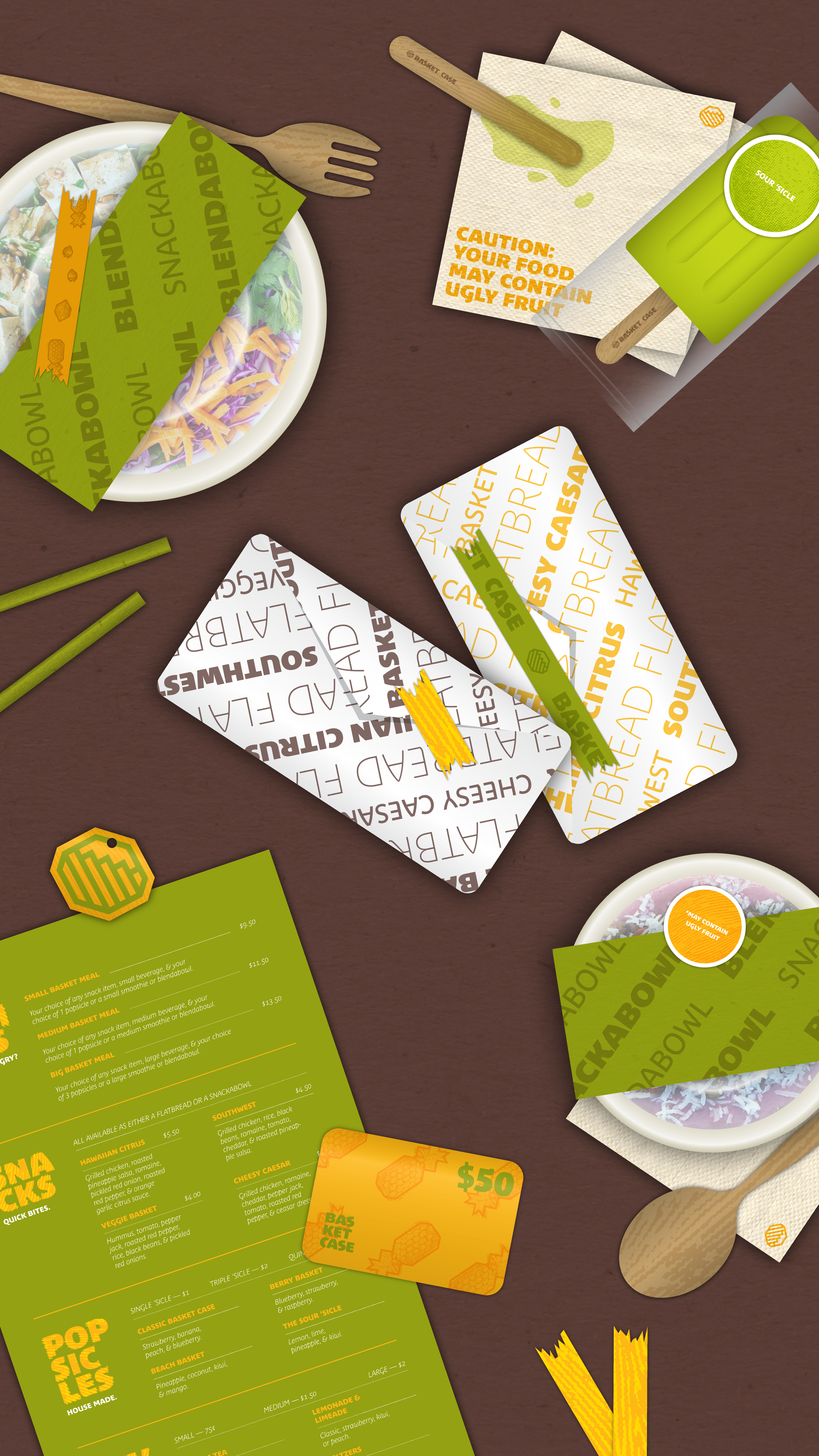 Blending the ideas of a misfit personality with fruit baskets, Basket Case is a build-your-own style restaurant specializing in smoothies and smoothie bowls made from bruised or imperfect produce deemed too “ugly” to sell in stores. Their oddball branding reflects their values as a sustainable, low-food-waste restaurant that’s not afraid to show that “different” isn’t always a bad thing.